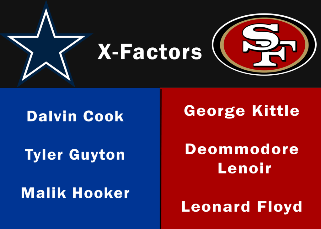 - Safety play has been down, Malik Hooker will have a big role in helping cover the middle. San Francisco has struggled to get a middle attack going, but Dallas over 6 games has given big plays down the middle.