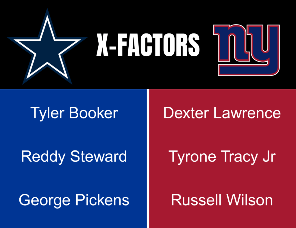 | George Pickens: Looking to have a big performance, first game at AT&T Stadium as a Cowboy. | Russell Wilson: The one true x-factor, Wilson needs to show a veteran QB performance and channel 2015. |
