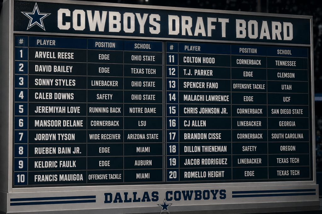 As every draft rumor flies around, I wanted to combine all of that to figure out who the Cowboys have on their big board. Like last year, I am extending the ranking to the Cowboys first round picks. This year, I will extend it to fit both picks.