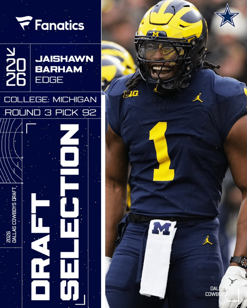 Barham wanted to let Cowboys fans know that they were getting a good player and a great guy off the field. “I feel like they got a guy that’s not going to get any trouble… just going to lead by the right way on and off the field pretty much and uh I’m going to represent that star the right way.”